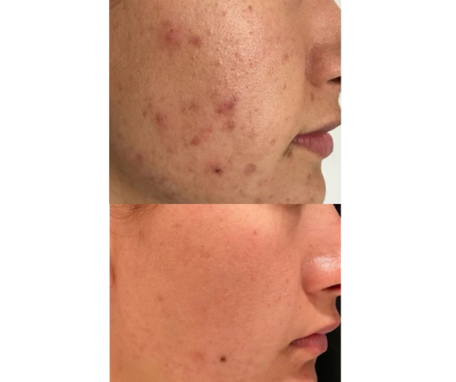- The process disrupts acne-causing bacteria (like C. acnes) on contact, helping to clear breakouts faster